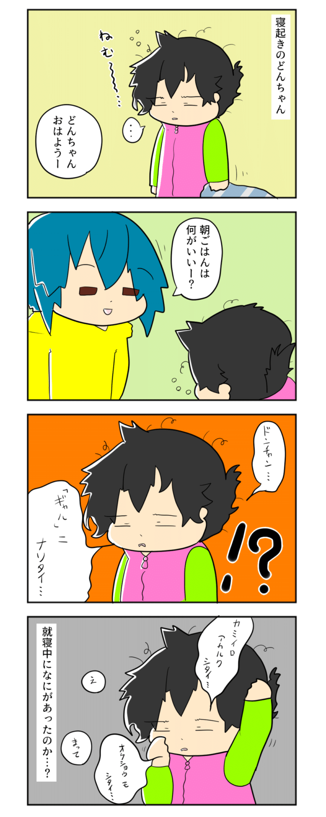 2016年生まれの兄ぽこちゃん、2018年生まれの妹どんちゃんのママであるmochikoさんから、寝ぼけて驚きの宣言をしたどんちゃんのお話です。