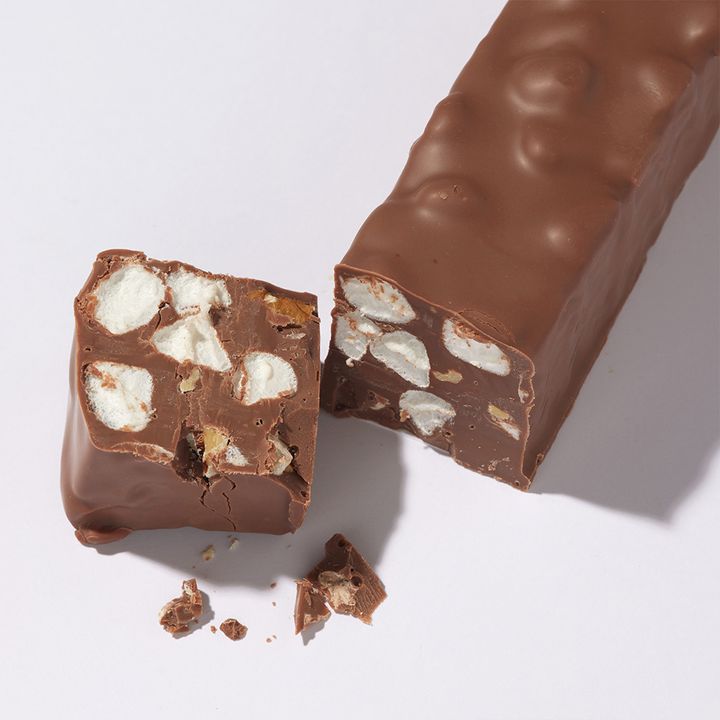 ブロック状のミルクチョコレートの中に、マシュマロとクルミを練り込んだ人気商品。
