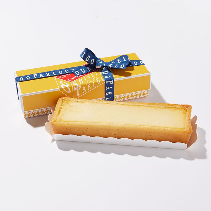 「資生堂パーラー銀座本店で手に入る『スペシャルチーズケーキ』は、香ばしく分厚いビスキュイ生地に、とろーり濃厚なチーズクリームをたっぷり流し込んだもの。良質なデンマーク産クリームチーズとサワークリームをふんだんに使用しているため、ほかのケーキとは一線を画す贅沢な味わいに仕上がっています。おすすめのペアリングは、なんといっても赤ワイン。常温で保存できるため、渡すタイミングを選ばないのもポイントです」(桶谷さん)