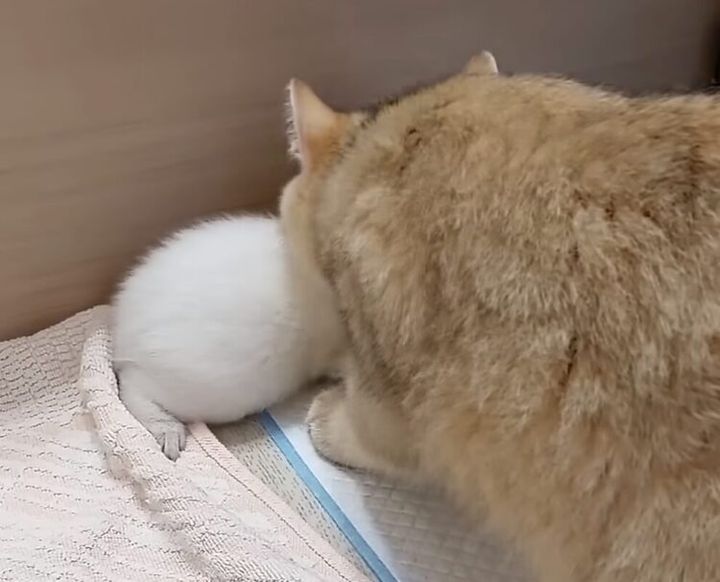 3. 自分の子じゃないのに! 子猫を連れ去っちゃう猫さん。