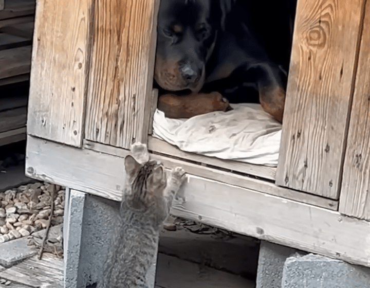 「イヌさん起きてるー?」大型犬にも遠慮しない子猫!