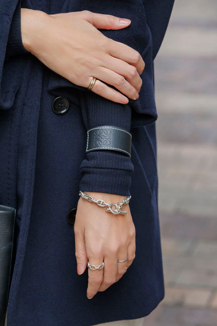 ring/Cartier(右手小指)、HERMÈS(左手人差し指)、NO BRAND(左手薬指) bracelet/HERMÈS、LOEWE