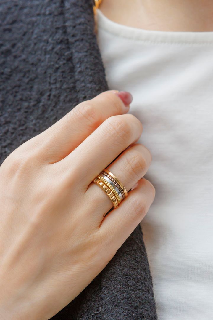 個性的なデザインなのに、合わせるものを選ばない万能リング