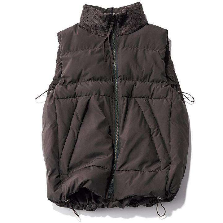 ダウンベストで脱カジュアルを叶えたいなら上品な質感と色味にこだわって。中に着るトップスを気にせず、手軽に羽織れて防寒もバッチリ。