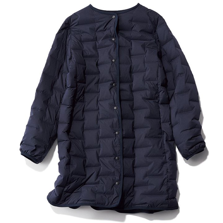 一見ダウンには見えないクラシカルなデザインがきちんとシーンで活躍の予感。ゆったりした着心地ながら、着膨れを抑えたシルエットも優秀。