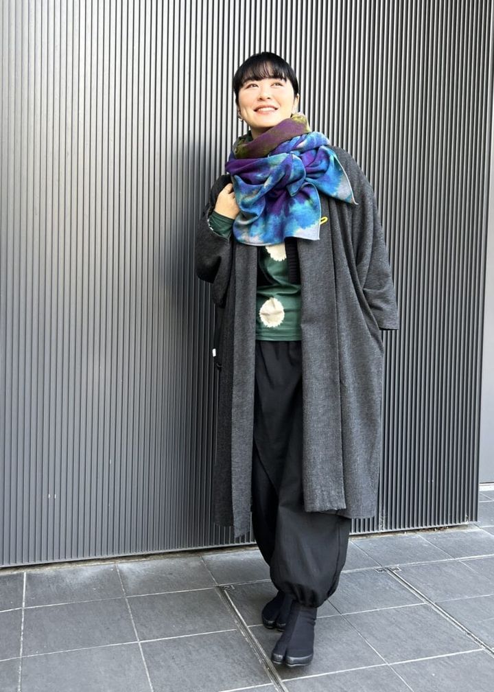 【関西スナップ】「SOU・SOU」の大判ストールが主役の個性派パンツスタイル