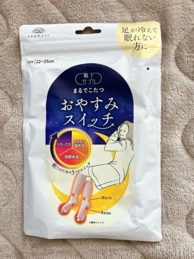 冬はつま先が冷えて眠れない…という人も多いですよね。私がまさにそれで、湯船につかっても眠るころには足が冷えてしまい困っていました。でも普通の靴下だと、蒸れたり、熱がこもってしまったり…。そんな悩みを解決してくれたのが、今大人気の「靴下サプリ こたつソックス」シリーズの、眠る時用の靴下「靴下サプリ まるでこたつ おやすみスイッチ」(okamoto)です。発表会でいただいてから1か月くらい使用してみたので、使用感などレビューしますね!