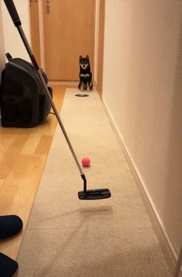 パターの練習を見守ってくれていた柴犬。 その時の一連の行動がかわいすぎると反響を呼んでいます!