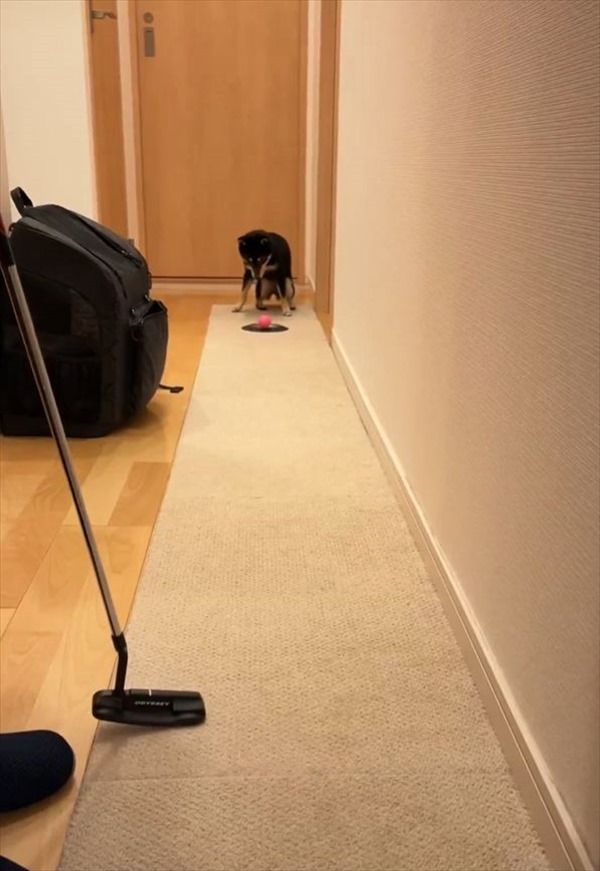 3. 柴犬が見守るパター練習。ショット後の行動に反響「かわいい!かしこい!」「ボールを戻してくれるから自動ゴルフ」