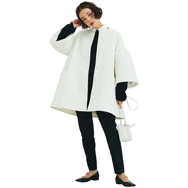 朝晩の冷え込みを感じる日は、機能性「キルティングアウター」がおすすめ。ブラウスのように着映えてボリューム袖がエレガント。