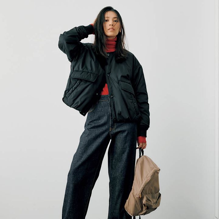 「MA-1風ジャケット」は“ノーカラー×短め丈”がキレイめ!