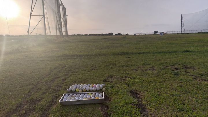 またこの練習場では、打席だけでなく芝生エリアからもボールを打てることがわかりました。打席で練習していると、芝生から打っている人の姿を見かけたので、スタッフに確認したところ「芝生からの練習もOK」とのこと。日本ではなかなか体験できない練習スタイルに興味を持ち、自分も実際に挑戦してみました。