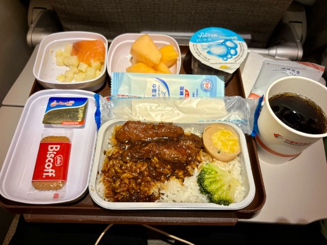 中国東方航空を利用したツアー参加者一行の間で、最も話題になったのが充実した機内食。