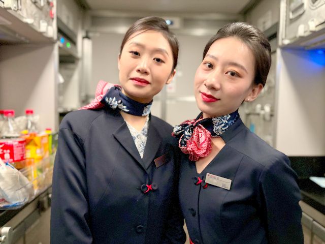 中国のエアラインと聞くと、不愛想な客室乗務員というイメージを持つ人が多いかもしれません。実際にひと昔前はそうでしたが、今回の中国東方航空の乗務員は笑顔で、とても丁寧なサービスが行き届いていました。