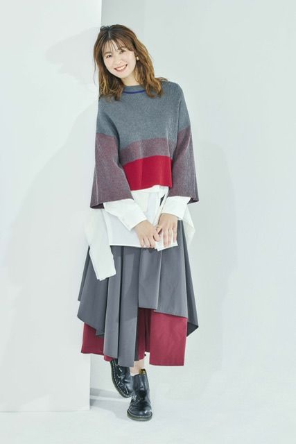 衣装協力:RANDOM STRIPE HALF KNIT ¥29,700、LAYER PARTS SH ¥37,400、ASYMME LAYERED ¥30,800、2WAY FULL MOON PIERCE ¥19,800/全てUN3D.(靴は木村さん私物)
