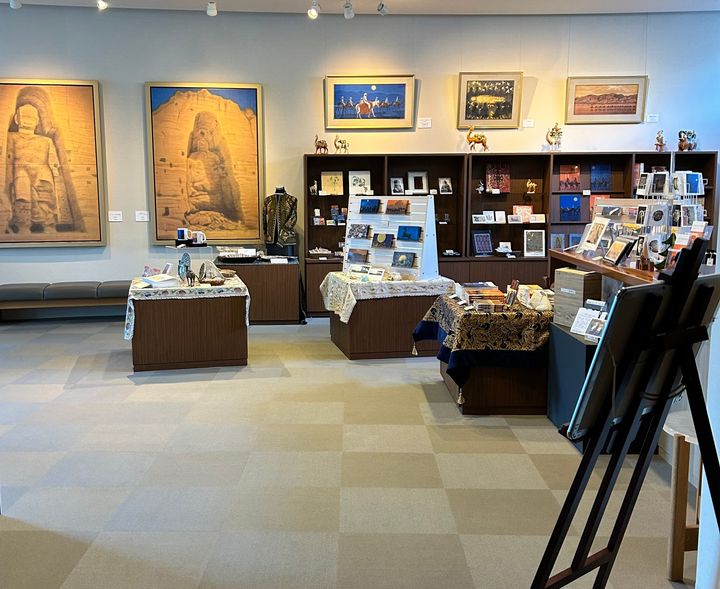 美術館には、画家平山郁夫のシルクロードに関する膨大な作品群が展示されており、その中には敦煌壁画や古代遺跡をテーマにした作品も含まれています。これらの作品は、彼の深いリサーチと現地での経験に基づいており、絵画としての美しさだけでなく、シルクロードの歴史や文化を知る貴重な資料としても価値があります。また、画家平山がシルクロードの各地で収集した遺物や資料も展示されていました。