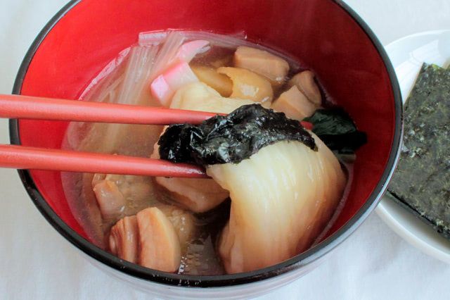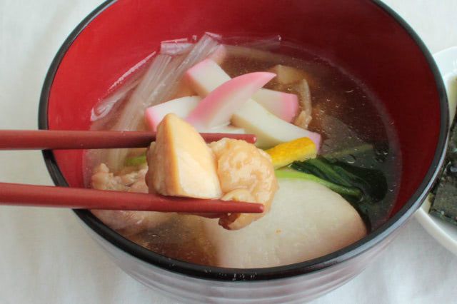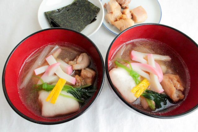 それは、鶏肉の甘辛煮と焼きのりを加えた、関東風のお雑煮でした。