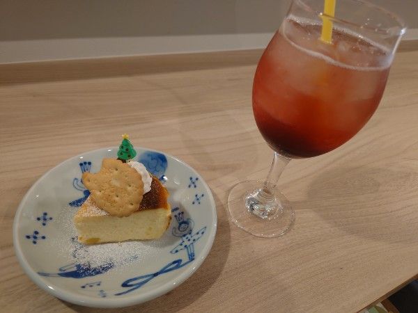 食後のデザートに本日のケーキを+495円で注文できます! もちろん私もオーダー!さつまいものバスクチーズケーキでした。食べて思わず、にんまり!美味しーー!かわいいクッキーも付いていました。癒し!