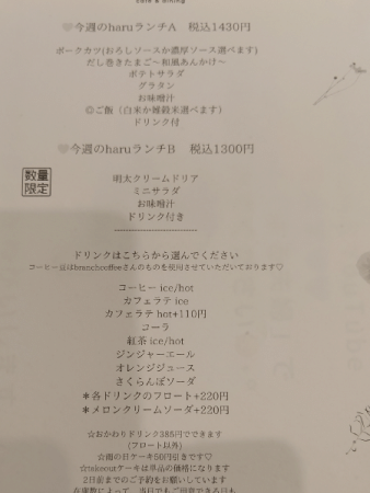 「haru」(ハル)というお店の名前は、奥さまのおばあちゃんの名から名付けられたそうです。おばあちゃんは、ご親戚の方にも大人気で親戚さんのペットちゃんの名前にもなっているそうです。おばあちゃんの周りは、ファミリーがいつも集まる温かで素敵な空間。そのような場所にしたいと「haru」と命名!素敵だなーとおもいました。