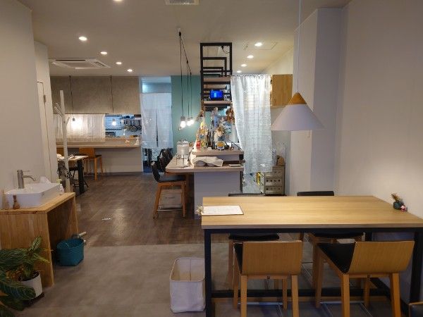 店内は、白を基調とし木製のテーブルや椅子がシンプルで温かい感じがします。照明や壁のイラスト、小物も可愛いんです。