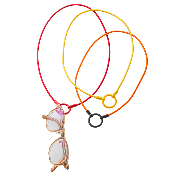 ロサンゼルス発のブランドが手がけるグラスホルダーは、伸縮性のあるコードがカジュアルな装いにぴったり。ネックレストップのような大きめの輪っか部分にメガネをぶら下げておけるから、必要なときにさっと取り出しやすくて便利。360度回転するヒンジ技術により、メガネの回転を防ぎ、滑り落ちにくい構造になっている。