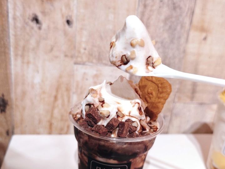 存在感のあるミルクソフトクリームはコクがありつつも後口さっぱり。チョコとナッツとの相性も◎。