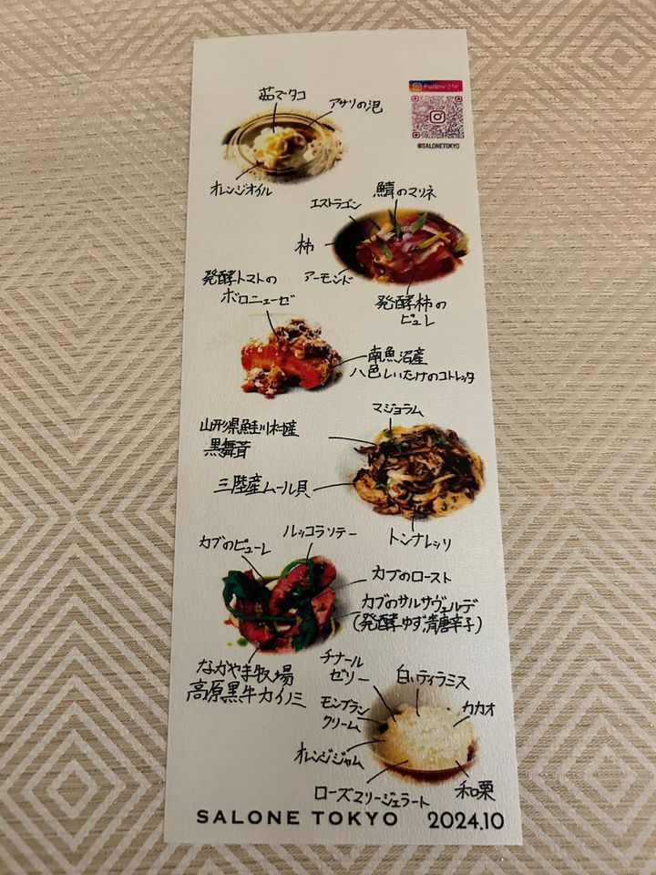 コースの最後には、その日いただいたコースメニュー表をいただけます。