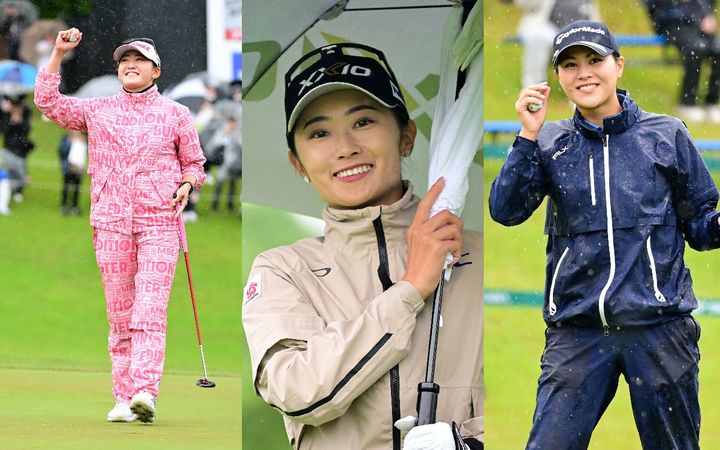 ピンクの総柄レインコートで自身の大会レコードを更新した岩井千怜プロ。記録更新に加えて優勝した日が母の日であったことで、印象的な勝利のワンシーンとなりました。