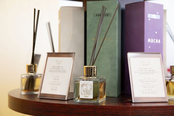 ミュシャの作品からインスパイアされた、世界初のミュシャ財団公認ブランド「MUCHA(ミュシャ)」のフレグランスやグッズも。