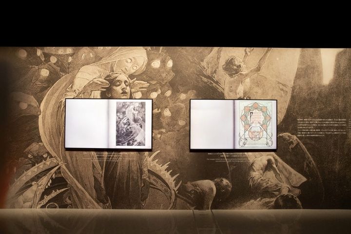 本展の第5章「インフルエンサー、ミュシャ」では、日本を含むミュシャに影響を受けた作品を多数紹介。©︎2024 Mucha Trust-Grand Palais Immersif-Bunkamura