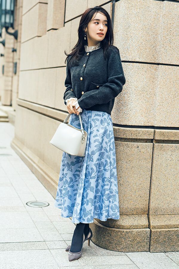 オフィスでも花柄スカートを履きたい!【クラシックな柄×ベーシックカラー】で洗練された印象に