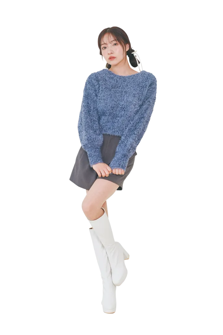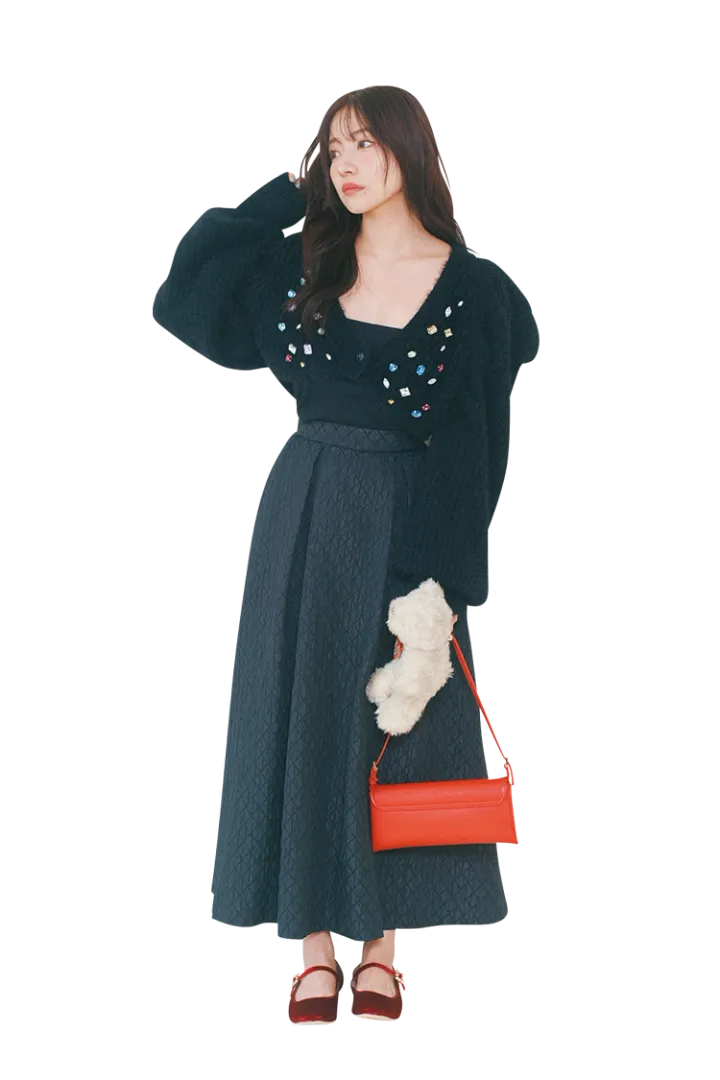 どれだけキラキラさせてもニット素材のふわふわ感によって強くなりすぎず、甘くて可愛い雰囲気のまま、まわりと差がつくコーデができる。
