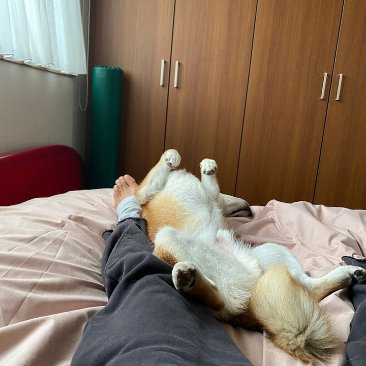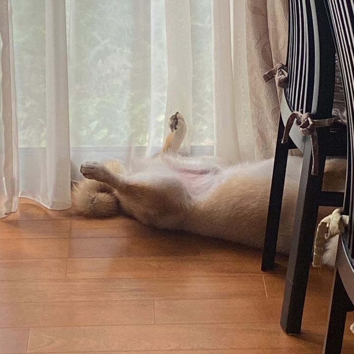 こんにちは、ハルくんです。ぼくの特技が「へそ天」だということは、以前から何度もお伝えしているかと思います。とーちゃんは「見て、またハルがキレイにへそ天を決めてるよ」と折に触れ誉めてくれます。ぼくの場合、とにかく平常時のリラックススタイルとしてへそ天をチョイスしているので、見るたびにへそ天、なんていう状況がしょっちゅうあるわけです。かーちゃんがお勝手で洗い物をしている視界の隅で、かーちゃんが休憩〜と言ってベッドでゴロンしている脚の間で、見事なへそ天を繰り広げているのです。カッコいいでしょう。