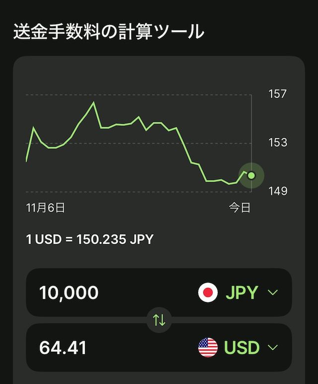 円安ドル高は私たちの頭を悩ます存在です。しかし、旅行前から為替レートを見ておくだけで少しお得になることも。Wiseのアプリでは、直近のレートのグラフがあるので、旅行前に安い! と思ったタイミングでまとめて換金しておくと、安くドルを持ったまま旅に行くことができます。