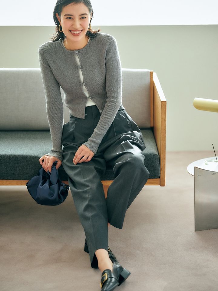品良く洒落て見えるカーディガン。楽なのにシンプルなパンツに合わせるだけでサマになるから、年末年始のイベントや、旅行、帰省にもっていこいです!