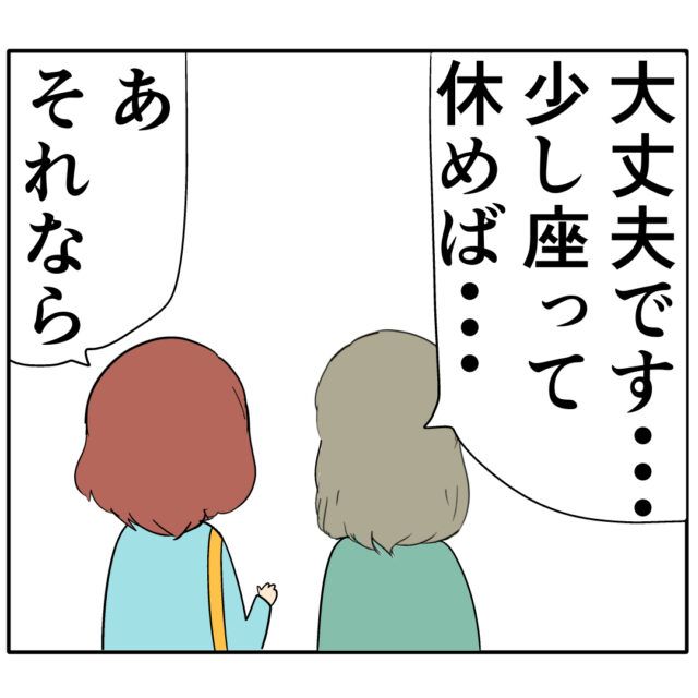「大丈夫です・・・少し座って休めば・・・」とめいさんの申し出を断るジュリ実さん。すると「あ、それなら」とめいさんが何かを思いつきました。