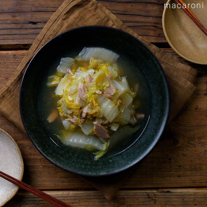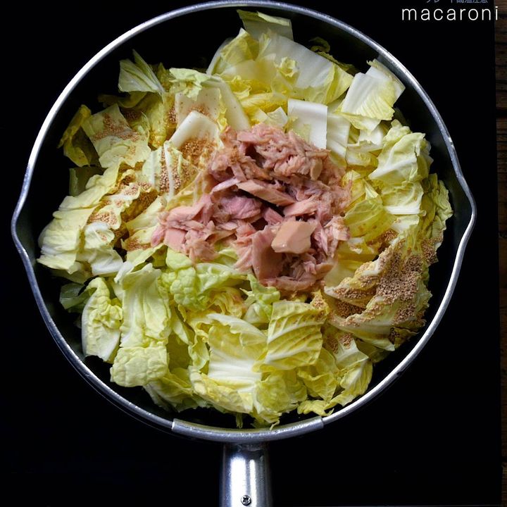 2: 鍋に①、ツナ缶(オイルごと)、【A】を入れ、中火にかけます。