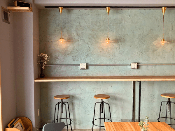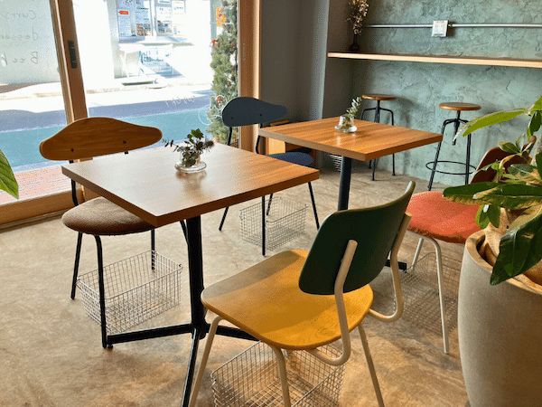 テーブル席、ベンチ席、カウンター席があり、一人でも複数人でも快適に過ごせる作り。カウンター席にはコンセントもあり、作業や充電をしながらのんびり過ごせます。