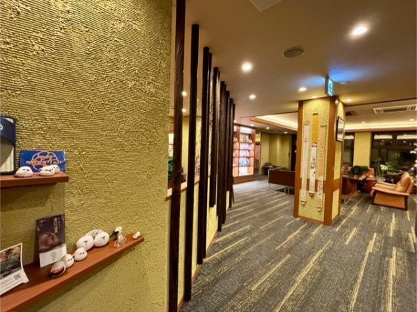 入口を奥に進むと温泉入口です。1階ラウンジが休憩スペースになります。大きなホテルやスーパー銭湯とは違った、こぢんまりとゆっくり落ち着いてほっとできる温泉でした。HPでお風呂の画像や動画がありますのでご確認ください。