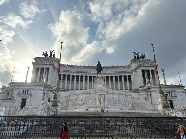 イタリア統一の象徴の建物である「ベネツィア宮殿」。ここにはイタリア無名戦士の墓や、イタリア王国の初代国王ヴィットーリオ・エマヌエーレ2世を記念するモニュメントがあり、イタリア統一の歴史に触れることができます。