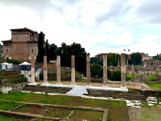 イタリア語で“広場”の意味をもつ「フォロ」、そして「ロマーノ(ローマ)」のを冠する「フォロ・ロマーノ」。繁栄当時、ここでは古代ローマの政治や経済、宗教の場所として機能した公共の広場でした。