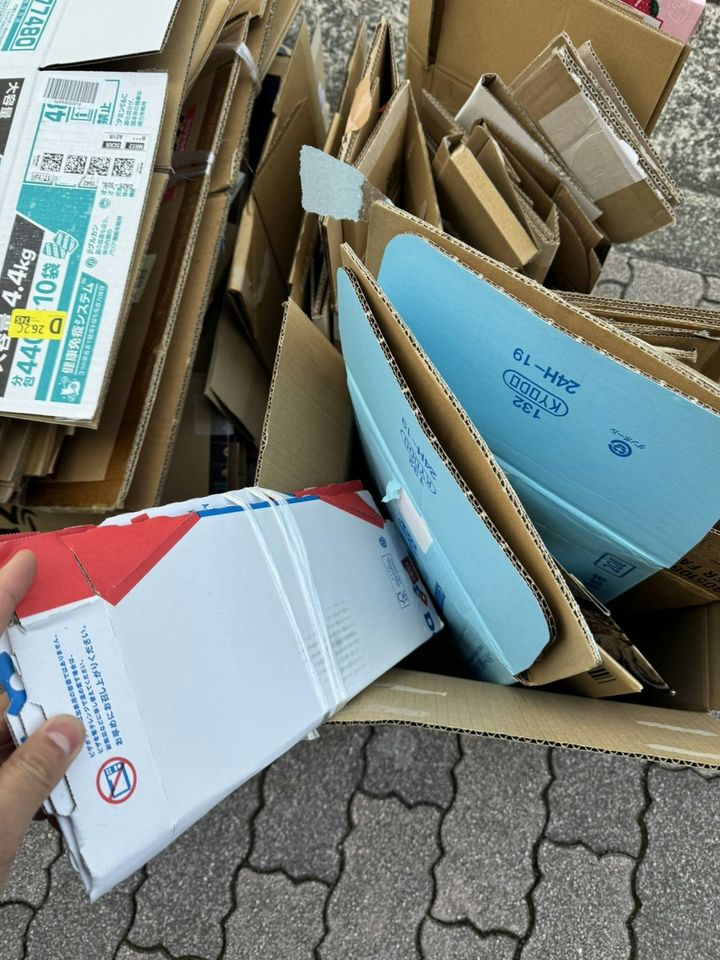 ピザの箱はダンボールの日ではなく可燃ごみでお願いします!理由は油が付いているので、リサイクルには不向きになります!台所でお皿洗いのついでに濡らしてぎゅっとして乾かすとコンパクトに捨てられますよ! X「マシンガンズ滝沢」(https://x.com/takizawa0914/status/1864441186548936808,2024年12月9日最終閲覧)