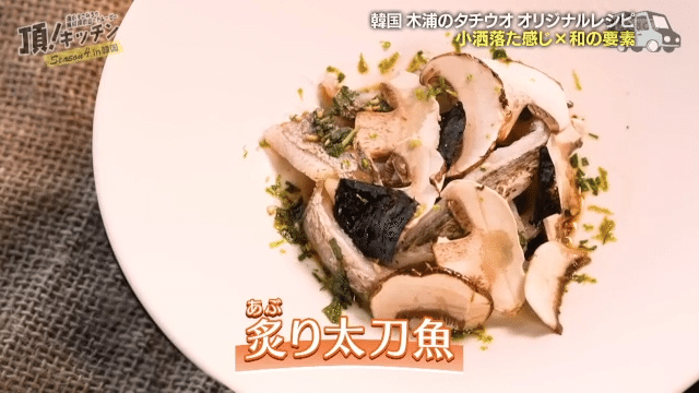 市場で食材を調達した速水は、考えに考え抜いてオリジナルレシピ「炙り太刀魚」を考案。皮面を炙った太刀魚の上に特製ソースをたっぷりかけ、その上にスライスした炙りブラウンマッシュルーム、海苔、すだちの皮などをかけて完成させた。韓国と日本の要素がありつつ、フレンチ風に仕上がったこの料理に、依頼者の女性たちは興味津々だ。「おいしいですね! 本当においしいですね!」「最高です!」と、彼女たちは笑顔で味わった。
