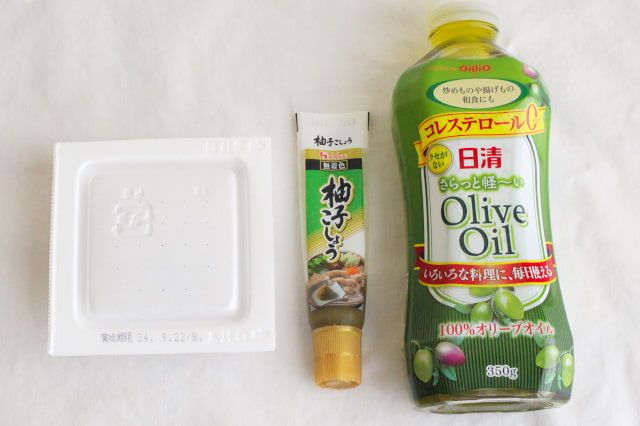付属のたれと辛子を、オリーブオイルとゆずごしょうに変えるだけの掛け合わせグルメなので、トライしやすいですよ。味が気になる方は、ぜひ!