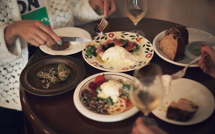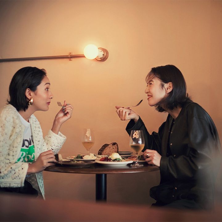 リスケの日程が決まった瞬間から、今度こそは…!と祈り倒しながら子どもの体調管理を第一に考えて過ごした3週間。パパとの予定合わせだけじゃなく、どうしたって想定外のことが起こり得るママにとって、一人で夜のお出かけなんてそれだけで奇跡みたいなもの。だからこそ叶った日には自分の希望にしっかり耳を傾けたい。“好きなものに身を包み、ここだけの話を楽しむ”どうしても欲しくて手に入れたビッグピアス、子どもに引っかかれそうで温存していたジャケットをここぞとばかりに選んでナイトアウトへ。緊張感のあるハイチェアの座り心地も、季節によって移り変わる黒板メニューも、何もかもが今また新鮮。ワインビストロでごはんなんて、何年ぶり!?とはしゃぎながらついつい頼みすぎた料理たちは、どれも個性豊か。渋味、苦味、辛味、酸味――いつもは全力で避ける“オシャレな味”が口の中を駆け巡り、思わず友達と顔を見合わせる。「美味しい…!」そうそう、忘れてたけどこんな味もあったなぁ。嚙みしめるようにいただいた。大人の食育も必要だよね、って話しながら、それでもここをアレンジすれば子どもも食べられそう?なんて考えちゃうのは、母の愛ってことで。