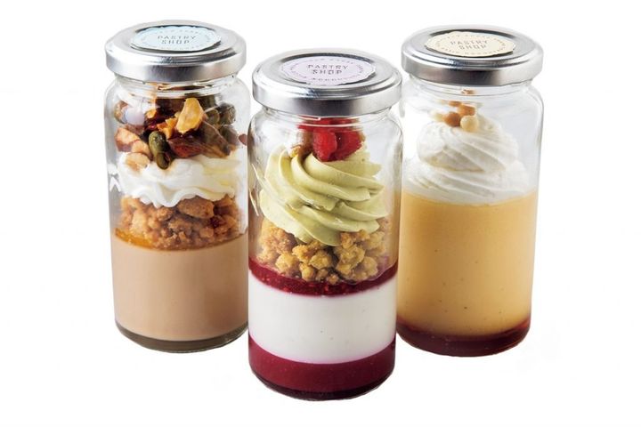 アンダーズ東京の「ペストリーショップ」で、エクレアに続くシグネチャーアイテムとして人気のスイートジャー。グラスジャー入りのビジュアルに心躍る一品は、持ち運びがしやすいので手土産に最適。ラズベリージュレにパンナコッタ、ピスタチオクリームの層が美しい「ピスタチオルージュ」とバニラビーンズをふんだんに使った「プリン」を定番に、濃厚なキャラメリアブリュレに香ばしいナッツが好相性の「キャラメリア」など時季によって入れ替わるフレーバーが揃います。