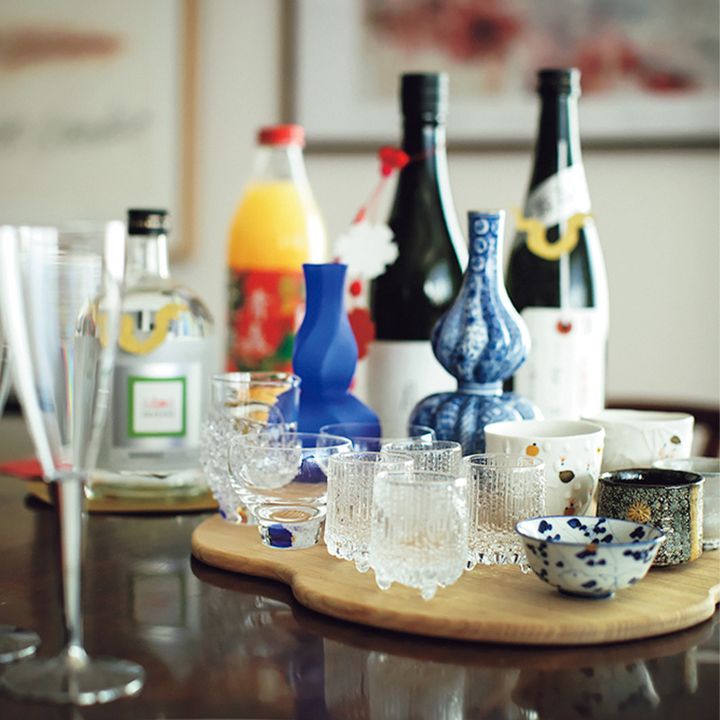 ドリンクも「お好きなものを自分のペースでどうぞ」のスタイルで。夫は気になる全国の酒蔵を訪れるほどで、私もその影響で好きになった日本酒。その時ゲストに飲んでもらいたい銘酒を2〜3種用意します。