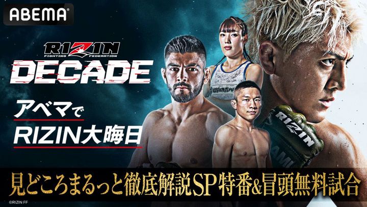 「ABEMA」は27日、「RIZIN DECADE」の特別番組『RIZIN DECADE 見どころまるっと徹底解説SP特番&冒頭無料試合』を、31日午後12時より独占無料放送すると発表した。