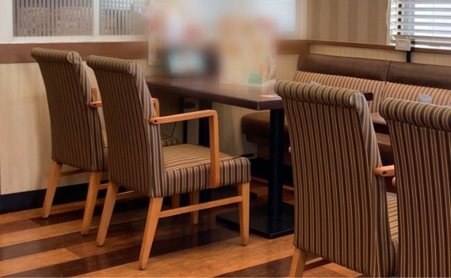 私は、息子と2人で並んで座って食べていました。すると、夫が座っていた向かい側の席に、突然知らない男性がスマホを見ながら、すーっと入ってきて無言で座ったのです。