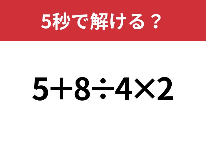 さすがに簡単すぎるかも!?「5+8÷4×2」5秒で解ける?